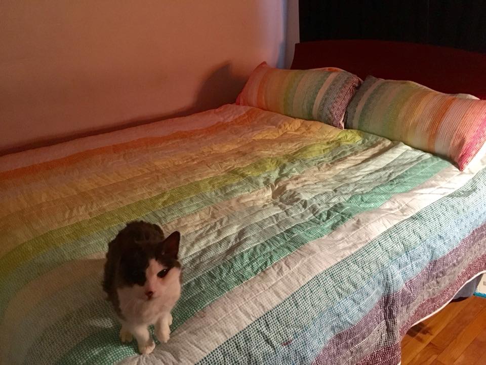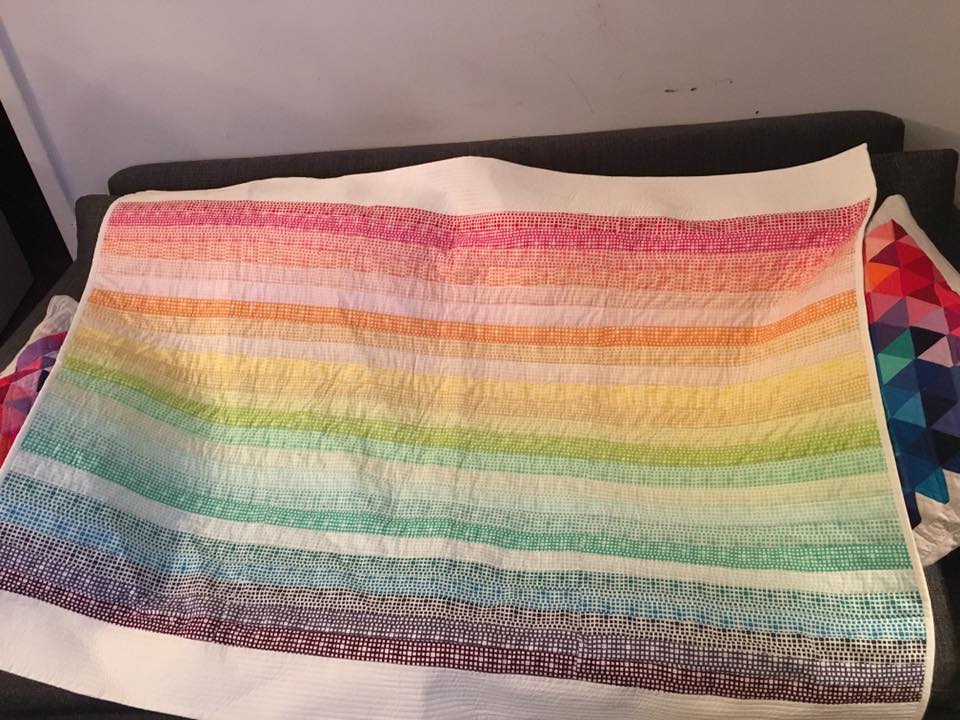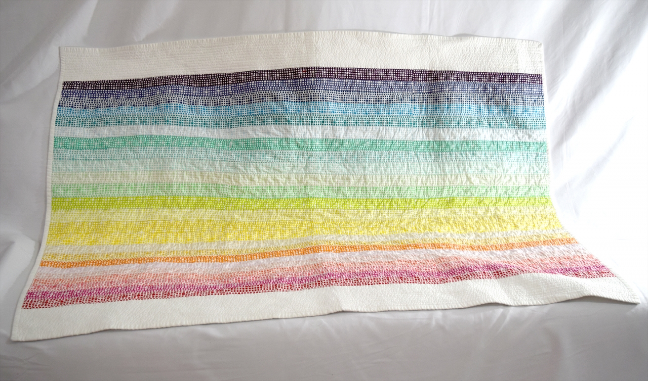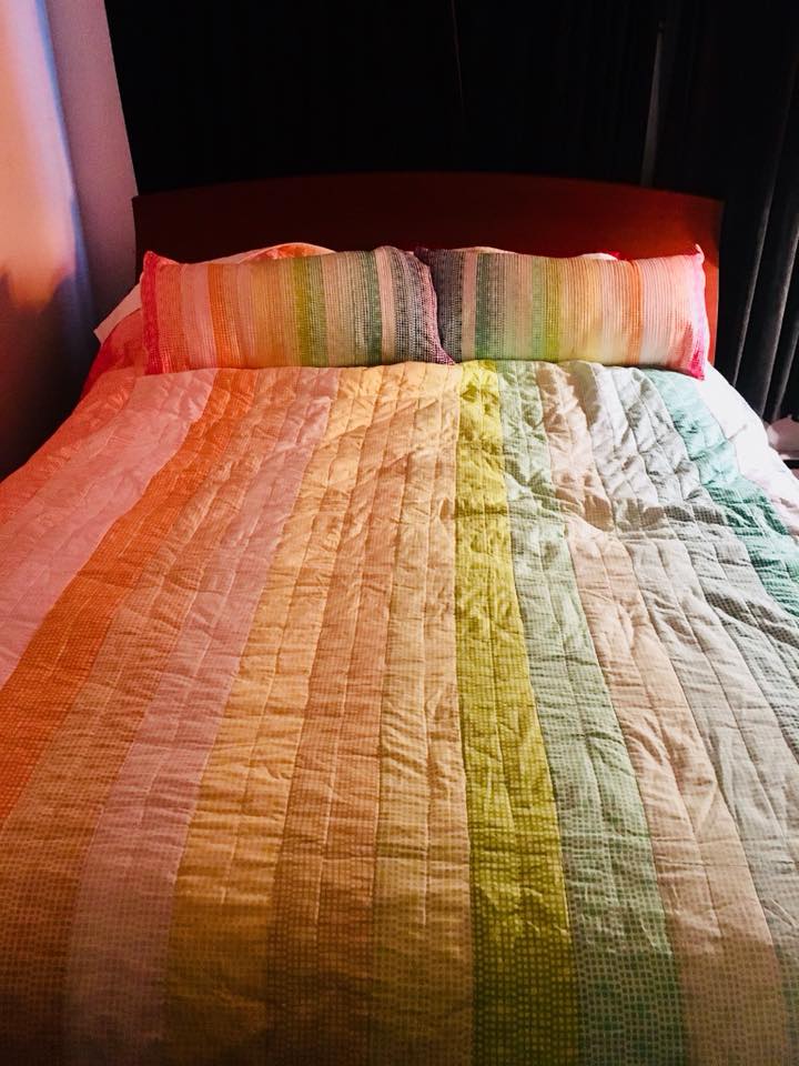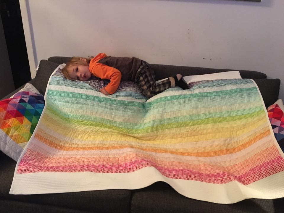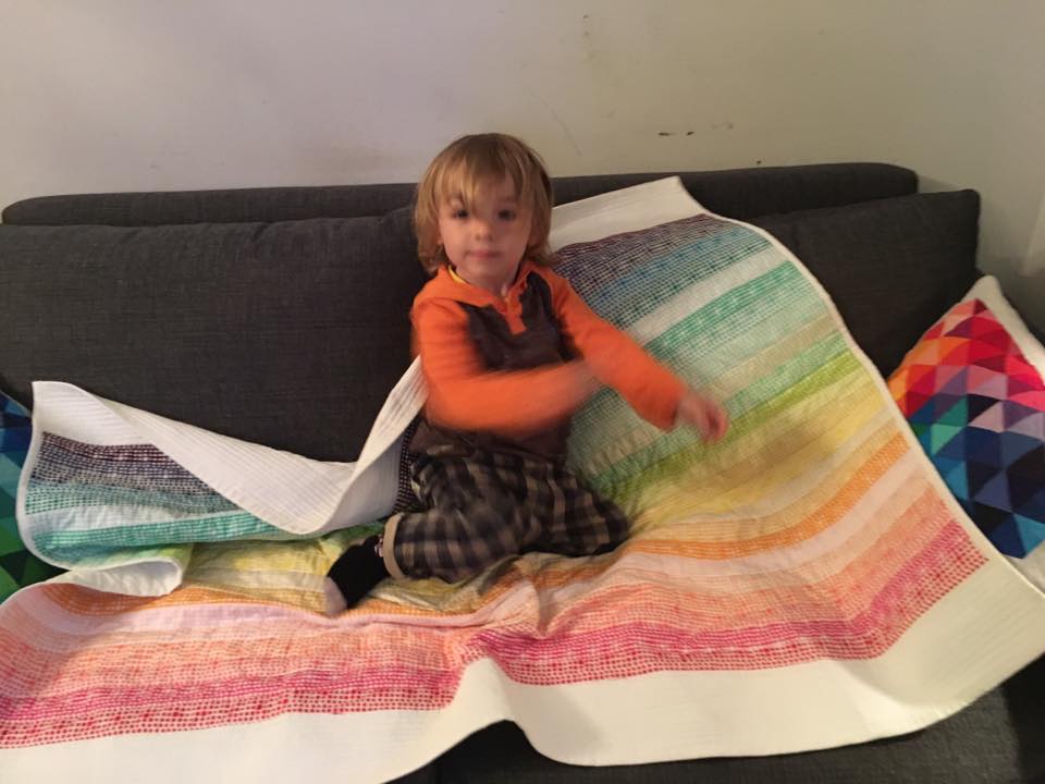 An intentionally simple strip pieced quilt because my then 2 year old wanted to “help” sew a quilt, it became a household favorite and is in daily use here. A mini version is beloved at naptime, and I was even able to make a black and white baby quilt for my youngest from the leftovers!