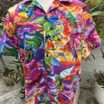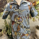 Men’s XXL neon rainbow dragons tropical shirt
