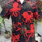 Men’s size M red, gold and black octopi tropical shirt
