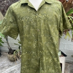 Men’s XXL olive green and gold metallic sashiko inspired tropical shirt