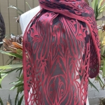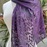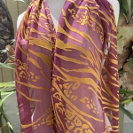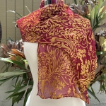 Fuchsia and gold arabesque print silk rayon devoré scarf